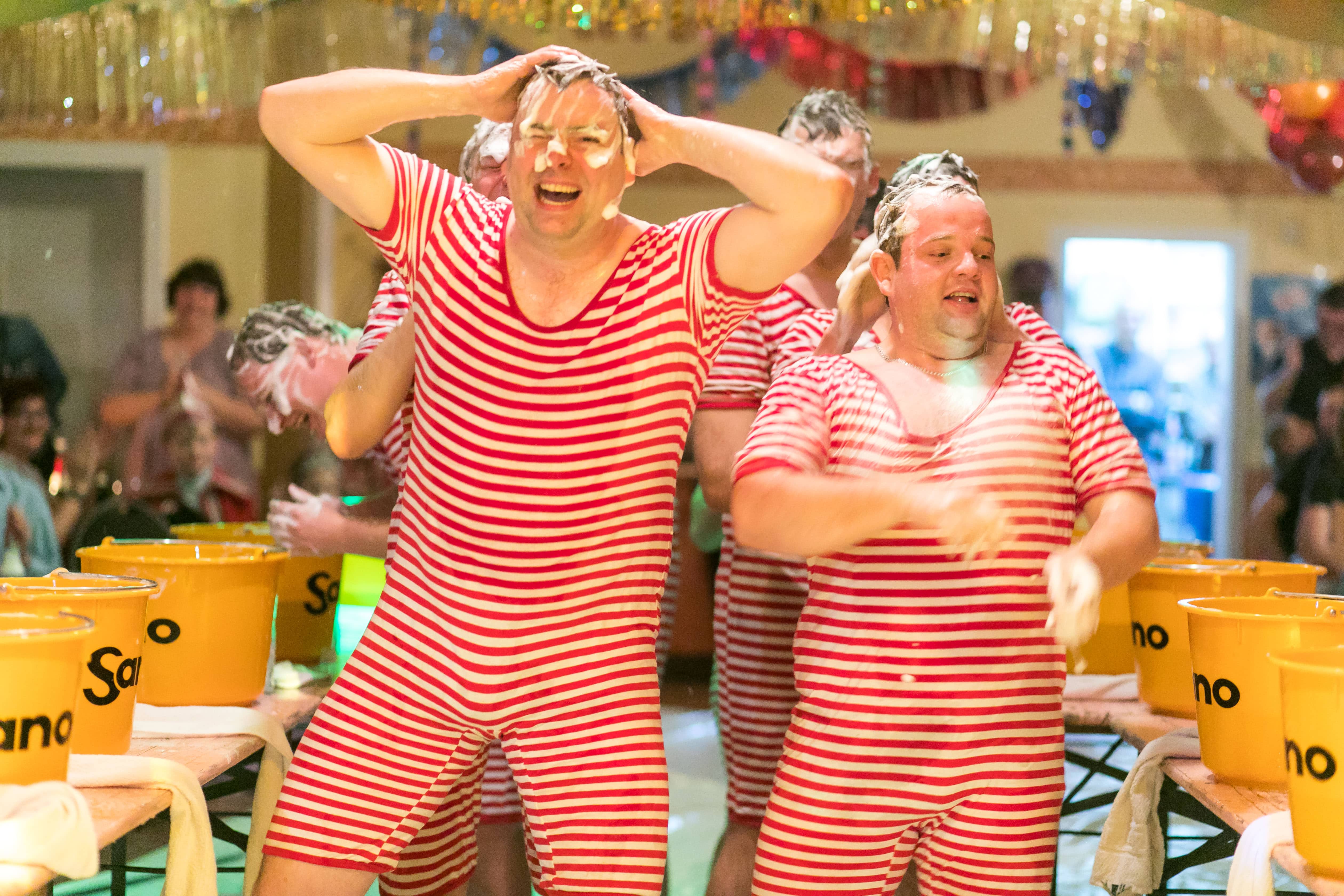Endlich richtig sauber. Unsere Sportler waschen sich gegenseitig gründlich die Haare.
